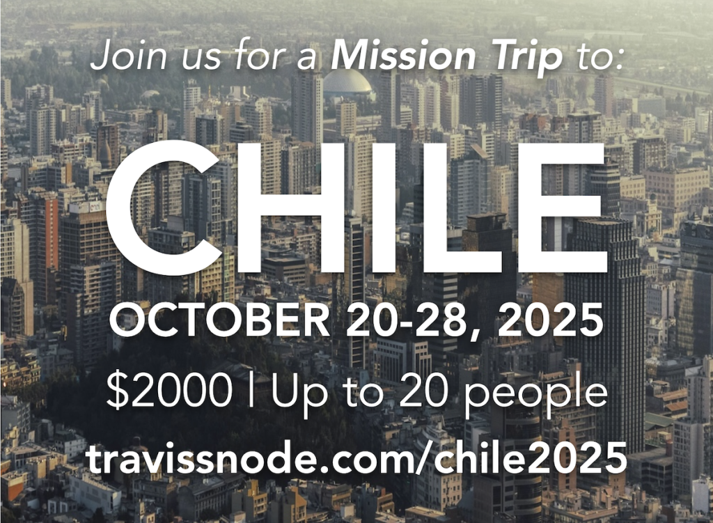 In the fall, Teri and I are hosting a mission trip to Chile, South America. We look forward to seeing and participating in the ministry of several missionary families. If you’re interested in going with us, let us know.